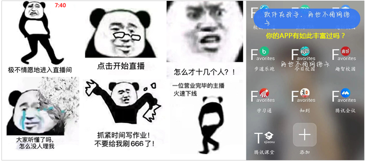 功夫不负有心人,在老师和同学们的协调配合下,网课正如火如荼的进行着。尽管一切渐入佳境,但前期由于平台拥堵与操作不熟等问题,还是闹出了很多可爱又美好的“翻车”瞬间:当同学们还在紧张又兴奋的准备与主播连麦时,却发现“网络主播”早已不在直播间,被迫下线,上着上着老师不见了,有点慌;上课时不知是哪位熊孩子没关麦,屏幕的那端竟传来“是谁在唱歌、温暖了寂寞…”的美妙歌声,弄得大家啼笑皆非;老师课间休息时忘记闭麦,用淳朴的方言与家人讲话,很多同学听到浓浓的乡音倍感亲切,也因此拉近了与老师的距离;同学们也在直播间与老师积极地互动,送礼物、刷小花、飘红心…一切的美好瞬间都丰富着同学们线上课堂的体验,让大家的课堂妙趣横生、多姿多彩。
