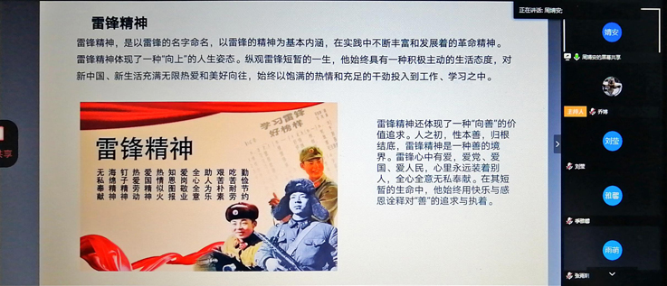 活动以学习雷锋事迹为开端,通过对雷锋精神、雷锋励志事迹的介绍,向同学们传达了雷锋精神不只是助人为乐、为人民服务的奉献精神,更是在人际关系、学习态度等多方面值得大家学习。随后,活动向同学们展示了疫情期间涌现出的最美逆行者们,希望以此可以让同学们对志愿精神有着更深刻的了解,真正领悟到志愿精神的内涵与真谛。