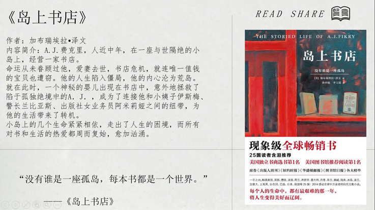 随后,各专业同学们依次介绍自己所推荐的书籍,并结合亲身经历展开心得分享。陆华健同学带来了《岛上书店》一书,他以自身经历向大家展示了在他自卑敏感的时候,主人公们积极向上的心态使他感受到世界的温暖,带他打开了自己的心门,塑造了不断进取的意志品格。杨淑娴同学分享了《最后的精神贵族》的读后心得,她表示正是民国十二先生在乱世中熠熠生辉,努力让人们到光明地方去的高尚精神,使她在疫情期间获得了无限力量,坚定了她战胜疫情的决心。同时,也有很多同学在线上分享他们坚持阅读的好习惯,鼓励伙伴们通过阅读充实自己,顺利度过居家抗“疫”的时光。