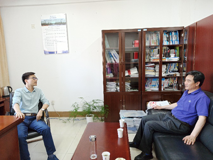 彭志胜和课题组相关成员热情接待洪尚全一行。他简要介绍了学院发展历史、专业设置、师资队伍、教学科研等方面的情况。根据学校特别是经管学院的学科专业特点和特色优势,重点介绍了未来可能的产学研合作领域。洪尚全介绍了金寨县未来5-10年的总体发展规划,同时就其分管的扶贫帮扶、困难职工救助等实际工作表达了合作的意愿。