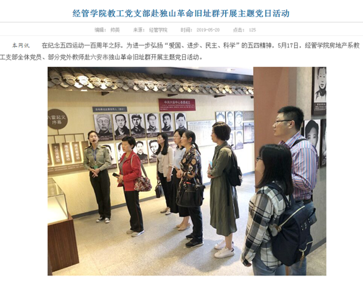经济与管理学院房地产系教工支部成立于2016年,是一支具有高学历、高职称、高素质、中青搭配、充满活力的集体。近年来,在学校、学院党委的坚强领导下,支部以习近平新时代中国特色社会主义思想和党的十九大精神为指引,严格落实党的组织生活制度和党员教育管理制度,有效实现基层党组织政治功能和服务功能,团结带领广大党员教师坚持为国育人,为党育才,落实“立德树人”根本任务,在教学改革、科学研究、学科建设和人才培养等方面,充分发挥基层党组织的战斗堡垒作用和党员的先锋模范作用。
