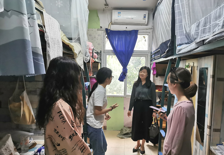 党委副书记帅英带领辅导员分别走访了南北校区学生宿舍,结合学校疫情防控要求,重点检查学生宿舍卫生、安全用电情况,是否存在私拉电线、使用违规电器等现象。提醒学生假期间妥善搁置贵重物品,断水断电,关好门窗,出行注意疫情防控,注意人身安全、交通安全、财产安全和食品安全,督促学生假期及时向辅导员反馈离返校情况。