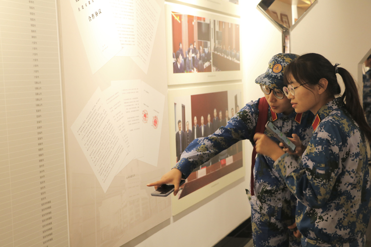 在讲解员声情并茂的解说下,同学们了解了建大60余年的发展历程。大家时而聚集在讲解员身边聆听讲解,时而分散开仔细了解自己感兴趣的史料。一段段文字,一幅幅图片,一件件实物,让同学们真切地感受到学校发展之路的艰辛,同时也对学校辉煌的历史以及所取得的成就表示赞叹。