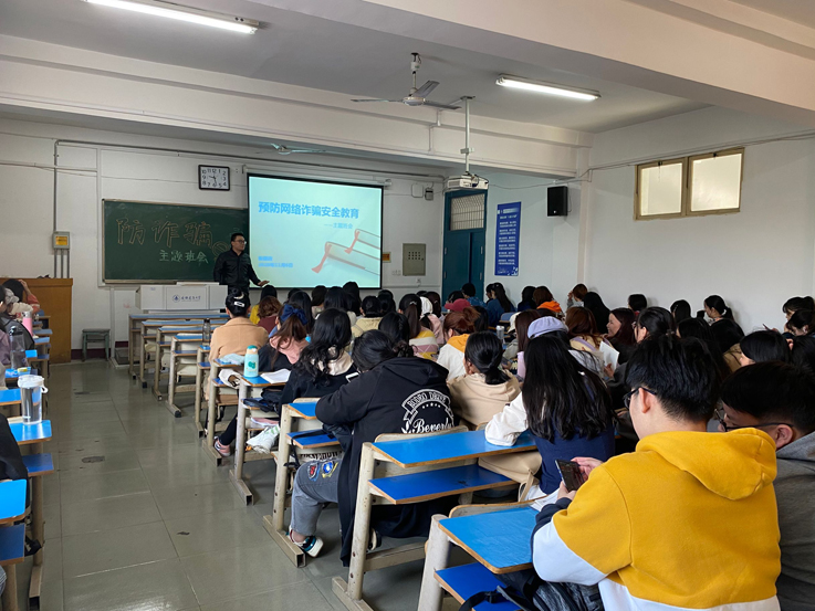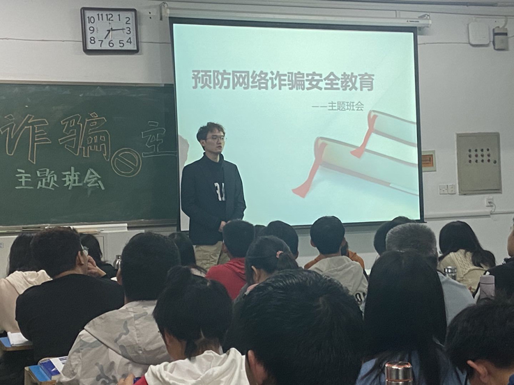 辅导员老师通过主题班会以文字、图片和视频等多种形式向各年级学生展示当今电信诈骗的典型案例和注意事项,整理出一套防范电信诈骗“六不(不听,不信,不转账;不理,不睬,不上当)”“三问(主动问本地警察、主动问银行、主动问当事人)”等“防骗箴言”。