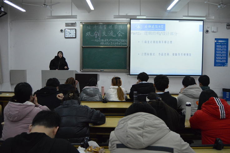 本网讯 12月14日,经管学院在南校区逸夫楼开展以“激发潜能,激活梦想”为主题的双创交流会。会议邀请了康陈、符扣锁、刘静雯三位有着丰富参赛经验的同学作为嘉宾,对经管学子进行了创新创业理论普及和实践指导。