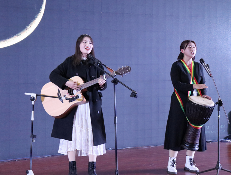 迎新晚会由“建大的一天”视频拉开帷幕,老师和同学们纷纷表达了对新年的美好祝愿。开场舞一曲《Come SeeMe》赚足眼球,引得观众尖叫连连;歌曲《小嫦娥》轻巧快活,自弹自唱展现了同学们的无限才华;舞台上星光点点,那是《夜空中最亮的星》在闪烁;舞台剧《达拉崩吧》唱唱跳跳,于歌舞中将晚会推至高潮,引起热烈反响。掌声,笑声,欢呼声,声声入耳,在场观众纷纷跟随音乐打起节拍,置身其中,感角色所感,乐角色所乐,用心感受着新年临近的脚步。