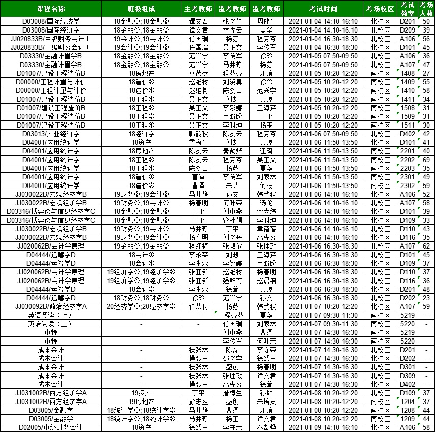 经管学院2020-2021-1第18周考试安排