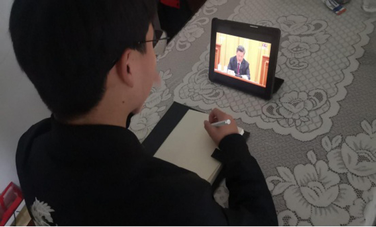 何佳祺同学说,脱贫攻坚工作在全国开展几年来,农村的居住环境发生了翻天覆地的变化,便民路走村串户,风貌打造后焕然一新,产业发展如火如荼,作为一名共产党员,要牢牢把握“四个意识”,响应党的号召到祖国最需要的地方干事创业!