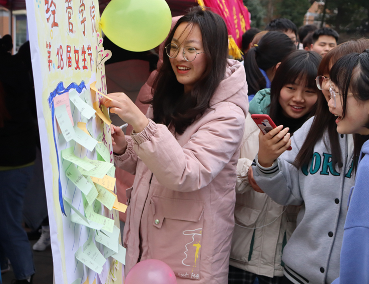 早春乍暖还寒,但同学们热情不减,早早来到了食堂门口,有序列队,等待活动的开始。在开幕式中,女生们纷纷将自己的心愿单贴在心愿墙上,原本空空的心愿墙,被大家热情的心与一张张小巧而又充满希望的心愿单所挤满。心愿墙上五颜六色的心愿单聚拢在一起,承载着大家对未来的愿望、期盼与希冀。与此同时,南北区也纷纷以横幅的形式承载着对建大女生满满的节日祝福。活动结束后,参加活动的同学们集体合照留念,记录下这温暖的一刻。
