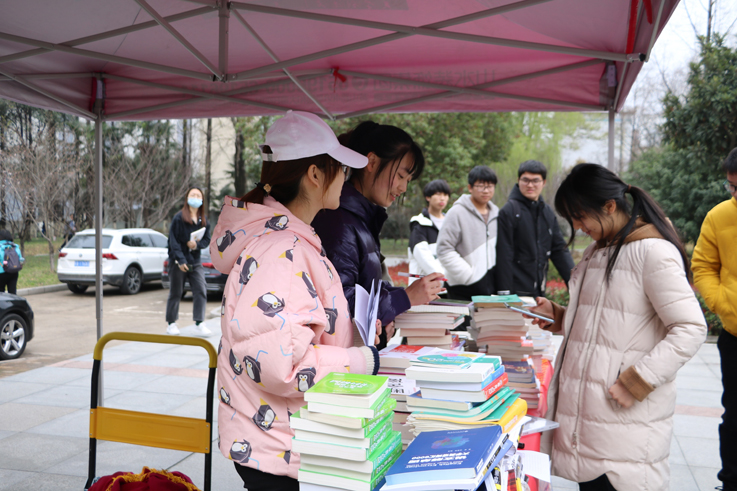 义卖活动开展当天,食堂门口吸引了众多学生前来购买。活动现场,书籍按科目分类有序摆放着,工作人员态度温和有礼并积极地向他们介绍所需要的相关书籍。整个活动共持续了四个小时,共筹集善款一千二百多元,一并捐献给了安徽省红十字基金会。