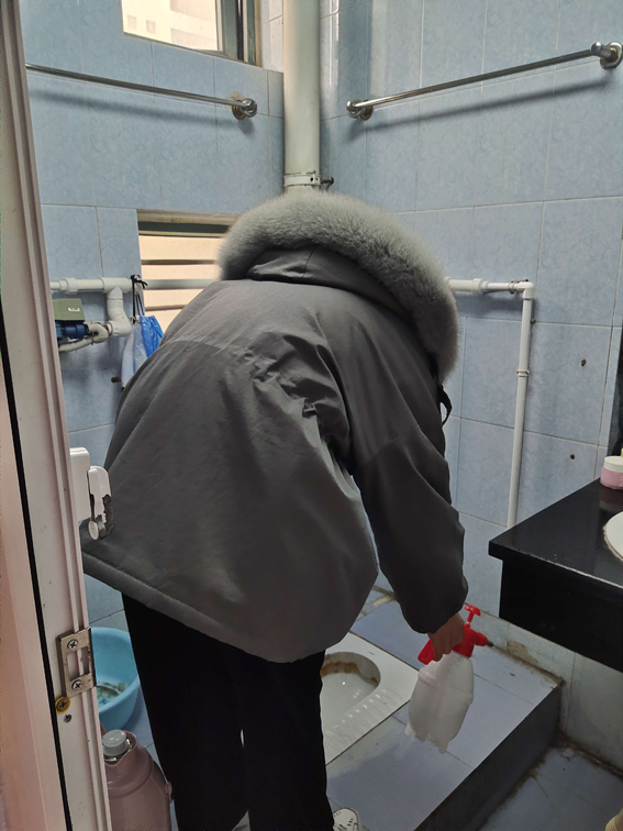 活动当天,各宿舍代表分别领取消毒物品,领取过程中学生骨干耐心地讲解消毒的注意事项,而后各宿舍开始有条不紊地进行实践操作,对卫生间、宿舍地面、床底、门角处进行了360°无死角全方位消毒并进行拍照记录。