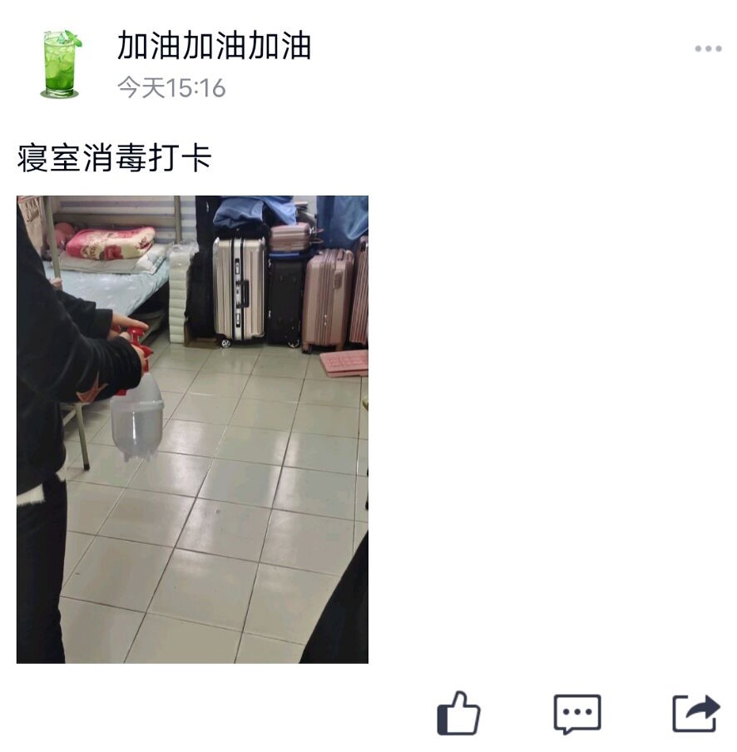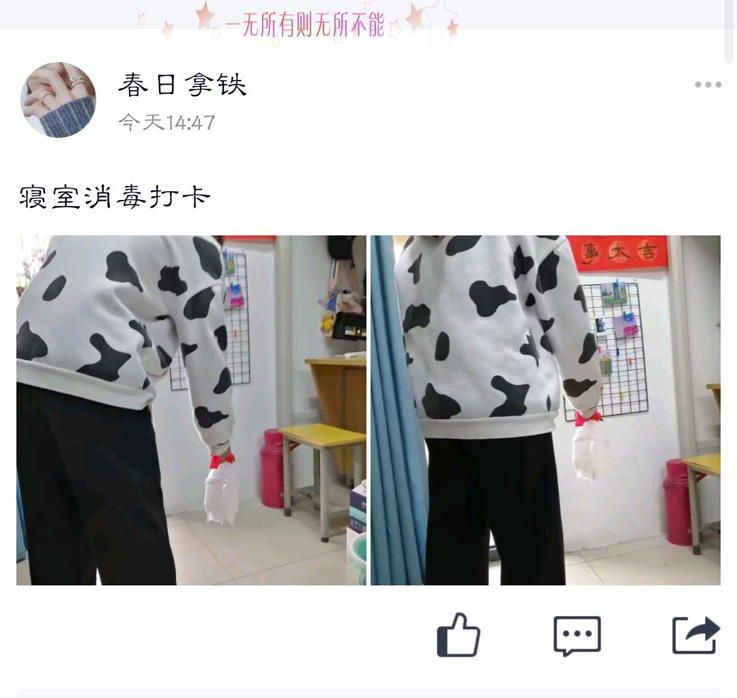 本网讯 春季是各类传染病高发的季节,为在全院范围内营造一个卫生、清洁、无菌的宿舍环境,3月20日,经管学院开展“温馨你我、牵手清洁”的宿舍消毒打卡活动。