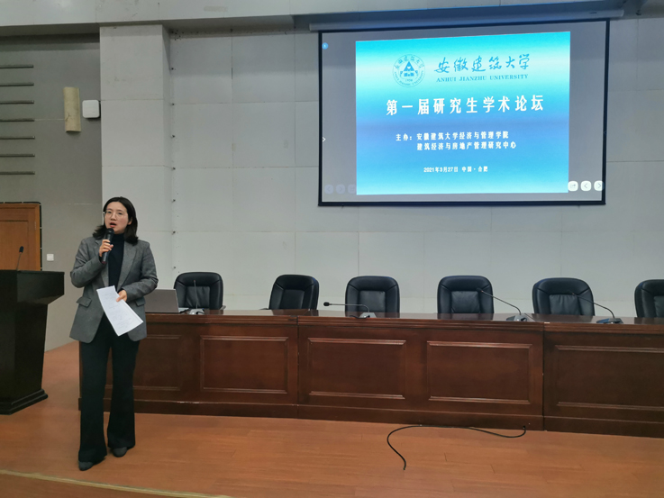 本次论坛分两阶段,第一阶段由中心邀请的安徽省扶贫办综合处处长颜涛和合肥工业大学土木与水利工程学院副研究员、博士后吕赛男作专题学术报告,第二阶段由优秀研究生论文获得者作交流汇报。论坛由经管学院院长潘和平主持,学院领导班子成员、建筑经济与房地产管理研究中心骨干教师、学院全体硕士研究生参加。