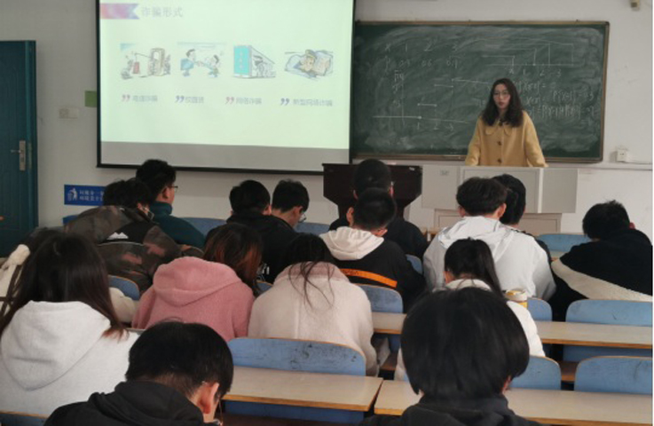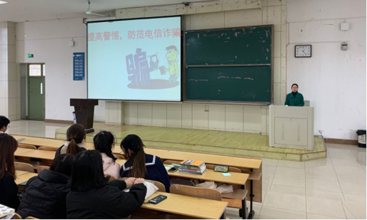 辅导员通过典型诈骗案例,深入分析了诈骗分子诈取钱财的流程及各类手法,叮嘱同学们擦亮双眼、不贪小利。在开展主题班会的同时还结合QQ、微信等网络终端进行宣传普及金融安全知识。