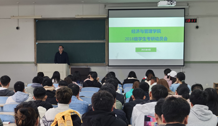 本网讯 为进一步调动广大学生考研积极性,力争在2022年研究生考试中有新的突破,4月7日,经管学院分别在南北校区召开2018级学生考研动员会。学院领导班子成员分别深入所联系的专业,开展动员宣讲,400多名学生参加了动员会。