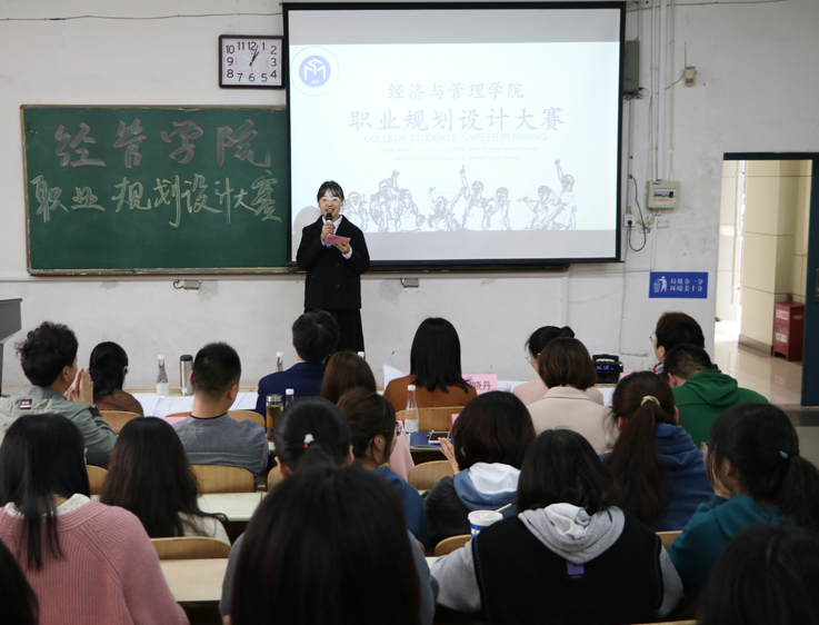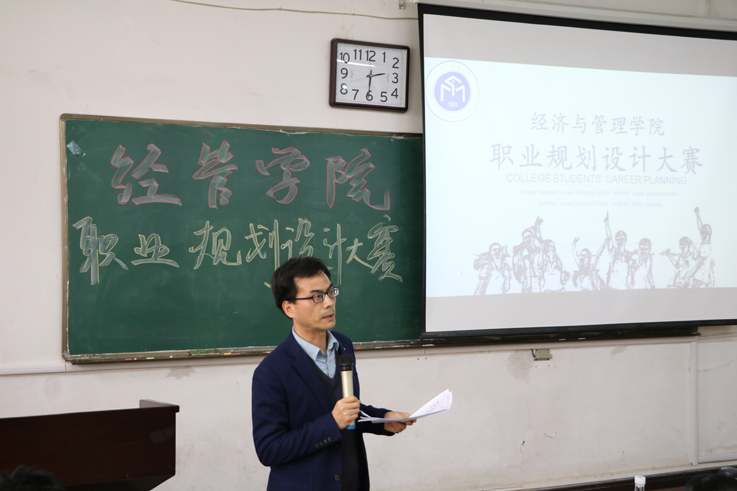 本网讯 4月14日,经管学院在北区A107教室举办大学生职业规划设计比赛,学院党政领导、辅导员老师和百余名学生代表共同参加了本次活动。
