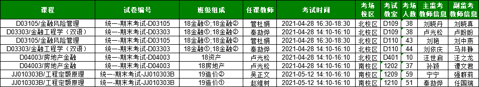 经管学院20-21-2第八周结课课程考试安排