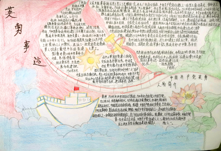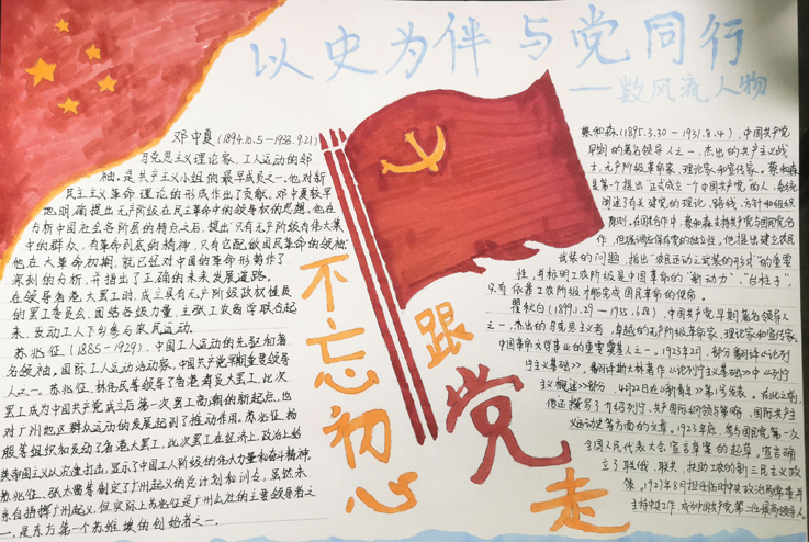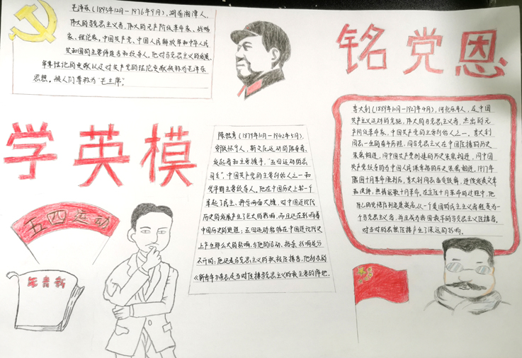 本次主题党日活动,以历史英雄人物为主要讲述对象,将手抄报作为载体,鼓励广大党员同学,利用手中的纸笔,描绘对党史的深刻感悟和对英雄楷模的崇高敬意。活动形式自由,不拘一格,受到广大党员同学的一致好评和广泛参与,优秀作品层出不穷。