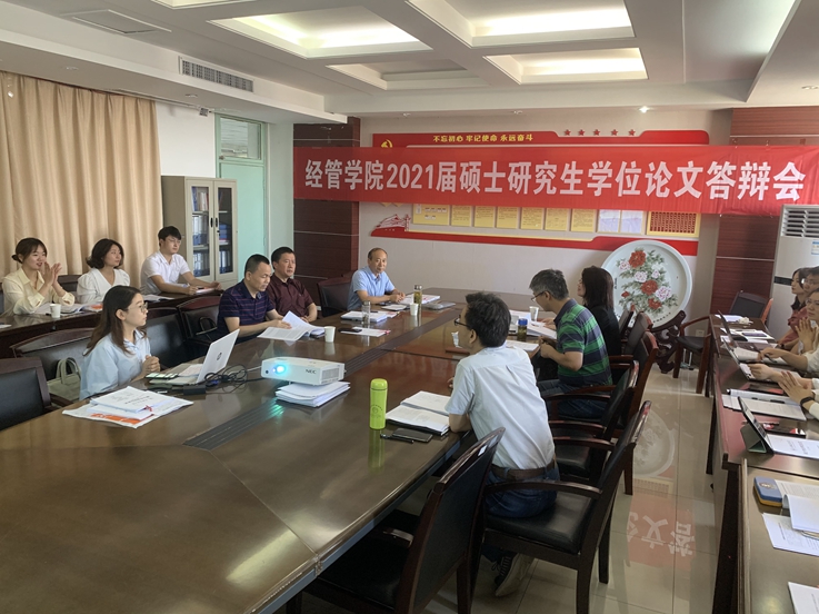 本网讯 2021年6月5日,经管学院组织开展2021届硕士研究生学位论文答辩工作。本次论文答辩共分四组,60名毕业班研究生参加学位论文答辩,其他在校研究生观摩旁听。