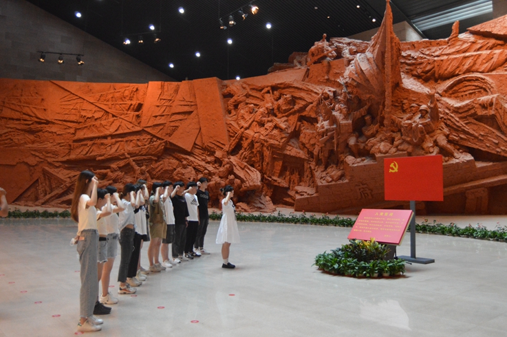 在渡江战役纪念馆广场,学生党员们先后瞻仰了胜利塔以及“五前委”雕塑,学生党员们怀着崇敬的心情参观了渡江战役纪念馆,馆内一件件烈士遗物,一个个烈士的光辉事迹,借助现代的技术手段栩栩如生地呈现在眼前,再次重温了党的光辉历史,让大家深切地感受到革命先辈吃苦耐劳、英勇无畏的精神品质。最后学生党员在胜利之师雕塑前面对中国共产党党旗进行庄严地宣誓,重温入党誓词。