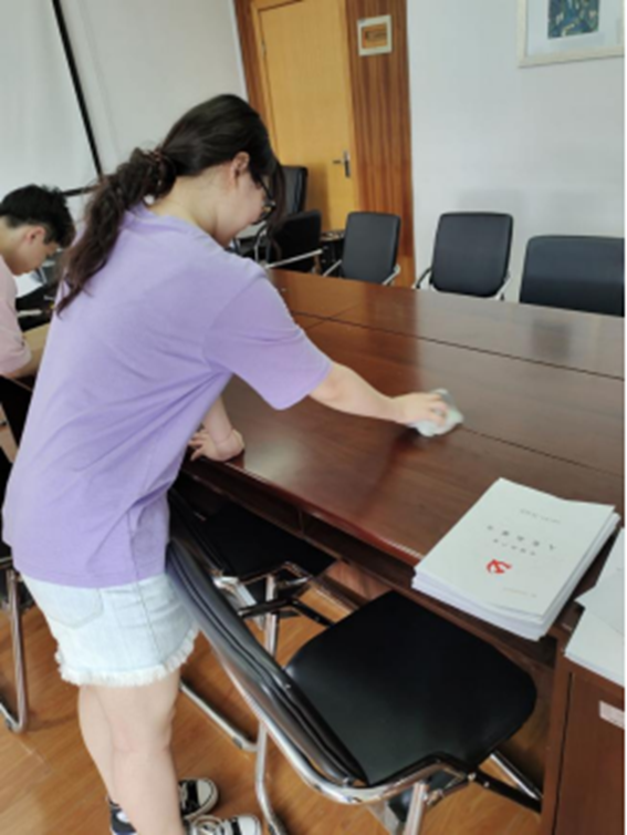 本次活动以“卫生大清扫,党员我先行”为主题,共有22名毕业生党员参加。毕业生党员们认真清扫了教学楼,在每层楼的楼道,仔细地将遗留在边角的垃圾一一打扫。教室里黑板框角落的粉笔灰,座位抽屉里的饮料瓶,每个角落都不被遗忘。从一楼到顶楼,每一次弯腰的姿态都写满了对母校的不舍、每一滴流下的汗水都浸透着对曾经的留恋。