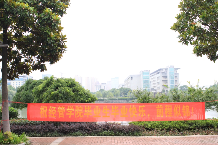 一条条红色的横幅“气有浩然无止境,无悔四年经管人”“我想你一定很舍不得离开,所以你只看前三个字就好”“祝经管学院毕业生毕业快乐,前程似锦”分别挂在寝室楼和欢送大道两旁,表达着对毕业生的浓厚情谊和美好祝愿。学生志愿者连续两天设置帐篷服务点,为有需要的毕业生搬运行李,提供热情的帮助和服务,一路将他们送到校门口,并送上真挚的毕业祝福。