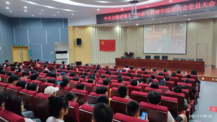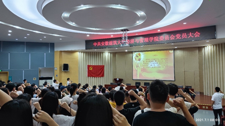 本网讯 7月1日上午,经管学院党委在北区图书馆报告厅召开党员大会,经管学院党委200多名党员共同庆祝党的百年华诞。