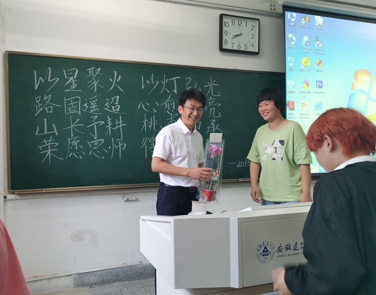 “学生的问候与祝福,是对教育的尊重,更是对师者的鞭策与激励。”今天一走进课堂就收到学生祝福的张亚新老师动情地说。(作者:李时坤;审稿:帅英)