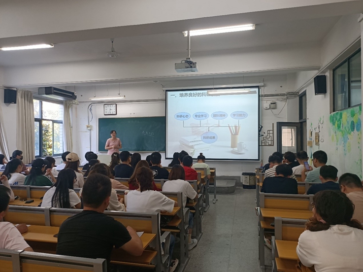 为让学生尽快树立科研意识,学院特别邀请李娜娜博士分享其读博期间从事科学研究的宝贵经验。李娜娜以“不负韶华,砥砺前行”为题,围绕培养良好的科研素质、选择正确的研究方向、如何查阅参考文献、如何撰写发表论文以及科学研究需要注意的问题等五个方面与新生分享了心得体会。李娜娜还勉励大家要调整心态,注重团队精神,努力提升学习能力,向着科学前沿积极探索。