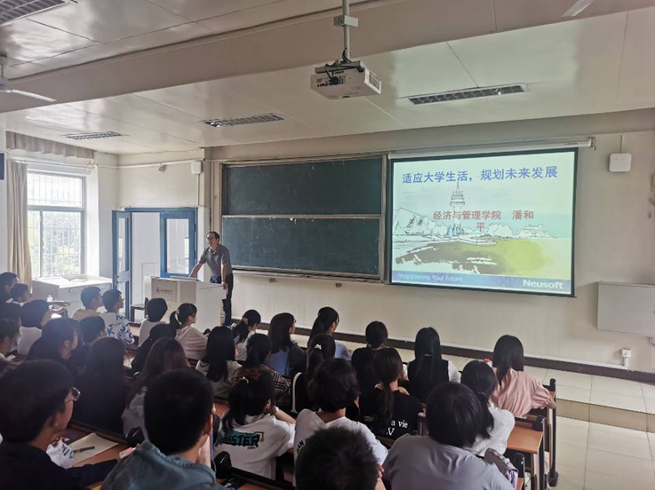 本网讯 为进一步引导2021级新生适应大学生活,做好职业生涯规划,9月29日,经管学院领导班子深入各专业班级,以“适应大学生活,规划未来发展”为题开展职业生涯规划教育。