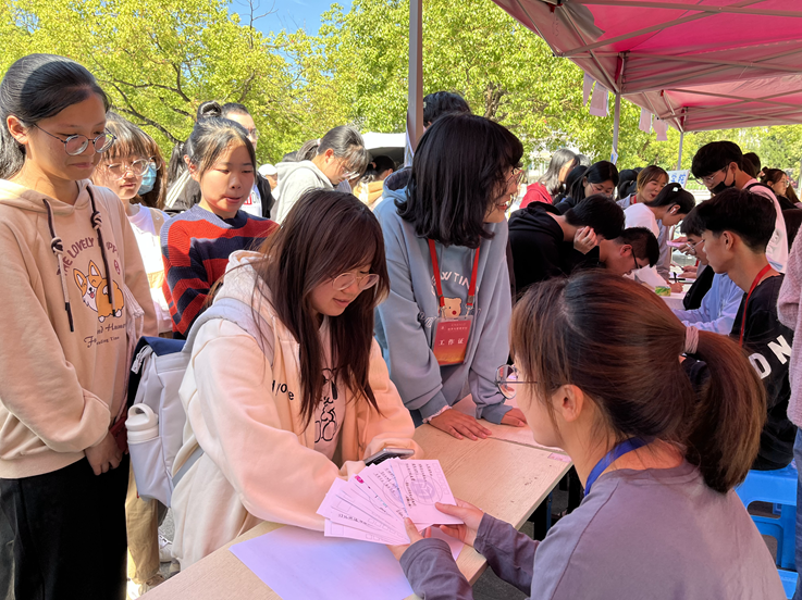 天高气爽,秋意微凉,活动现场氛围井然有序。同学们郑重地在横幅上签上自己的名字,并接过工作人员分发的明信片,将自己的祝福送给他人。活动负责人认真向到场学生们详细介绍了此次寝室文化节的主题、活动形式、活动内容等,鼓励大家积极踊跃参加活动,共同构建良好寝室文化氛围。
