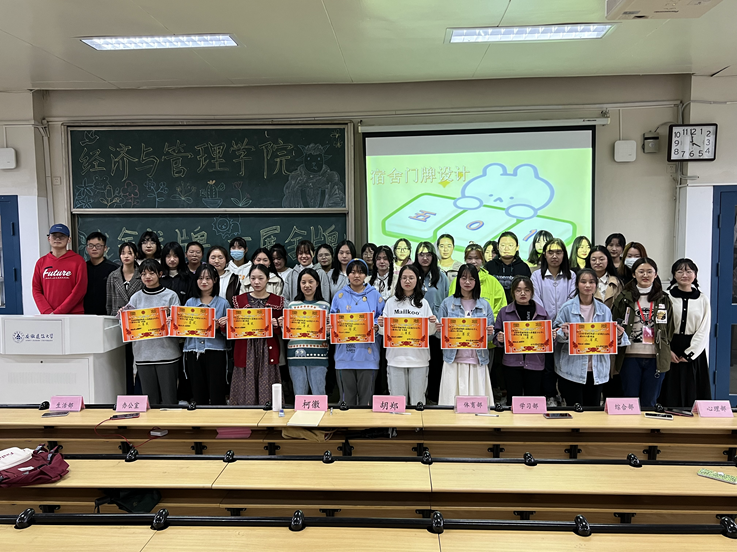 本网讯 10月20日下午,经管学院寝室门牌设计大赛决赛在北区C楼605教室举办。同学们根据寝室文化创作出各具特色的门牌,在经过线上投票初选后,共有九个寝室的设计作品进入了决赛。