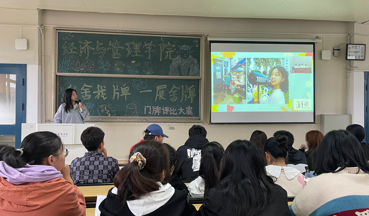 本网讯 10月20日下午,经管学院寝室门牌设计大赛决赛在北区C楼605教室举办。同学们根据寝室文化创作出各具特色的门牌,在经过线上投票初选后,共有九个寝室的设计作品进入了决赛。