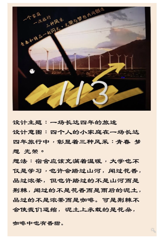 本次活动通过学生的亲身参与,发挥了同学们的创作能力,彰显了寝室文化特色,加深了同学间的交流和感情,营造出了团结友爱、积极活泼的良好氛围。(作者:刘晓丹 张逸凡;审稿:帅英)