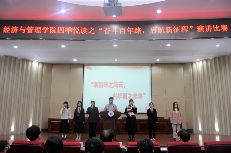 本网讯 为回顾中国共产党一百年光辉历史,弘扬伟大建党精神,强化青年使命担当,12月10日,经管学院在北区图书馆二楼报告厅举办“奋斗百年路,启航新征程”演讲比赛。校领导蔡新立和学院党政领导共同观看了本次活动。
