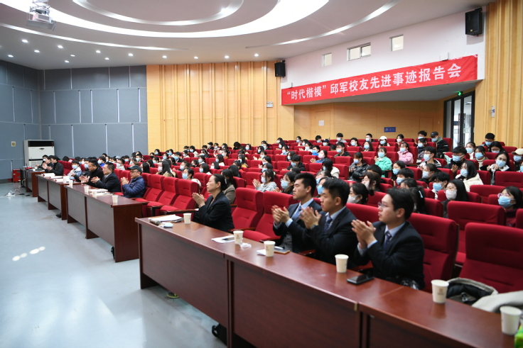 本网讯 12月22日,经管学院举办“时代楷模”邱军校友先进事迹报告会。校党委书记孙道胜会见了报告团成员,学院190余名入党积极分子现场聆听了报告会。