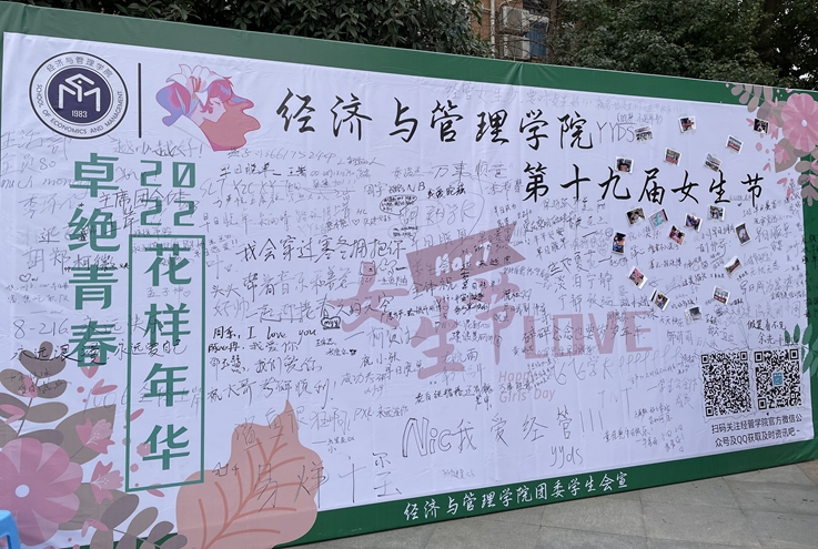 本网讯 为进一步打造“女生节”特色品牌活动,营造健康文明、积极向上、团结友爱、青春美好的校园文化氛围,充分彰显学院女生“自尊、自爱、自信、自强”的精神风貌,近日,经管学院在北区食堂广场举办第19届“卓绝青春·花样年华”女生节开幕式。