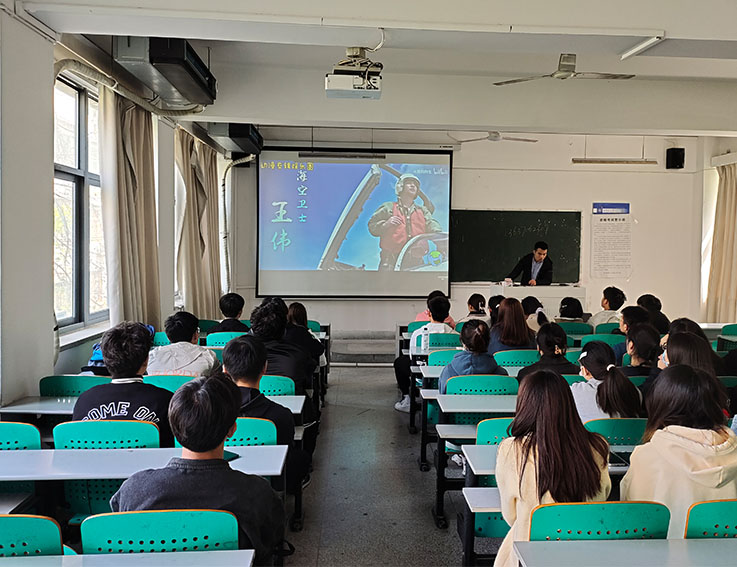 党支部书记首先带领大家回顾了王伟的英雄事迹。2001年4月1日,美国EP3侦察机飞入我国领空,我海军航空兵少校飞行员王伟受命驾歼8战斗机起飞迎战,因美军飞机惊慌失措大角度转弯,撞毁了王伟驾驶的81192战机的尾翼......。“呼叫81192,请返航回家!”“81192收到,我已无法返航,你们继续前进,重复,你们继续前进!”这是王伟生前的最后一段对话。王伟同志在执行该任务时在最后一刻选择了用生命守护中国领空,用生命谱写了一曲爱国主义和革命英雄主义的壮丽凯歌!