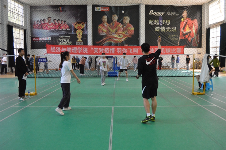 本网讯 在疫情防控的特殊时期,为进一步丰富学生的校园文体生活,4月3日,经管学院于北区风雨操场开展“笑对疫情,羽你飞翔”趣味羽毛球比赛。