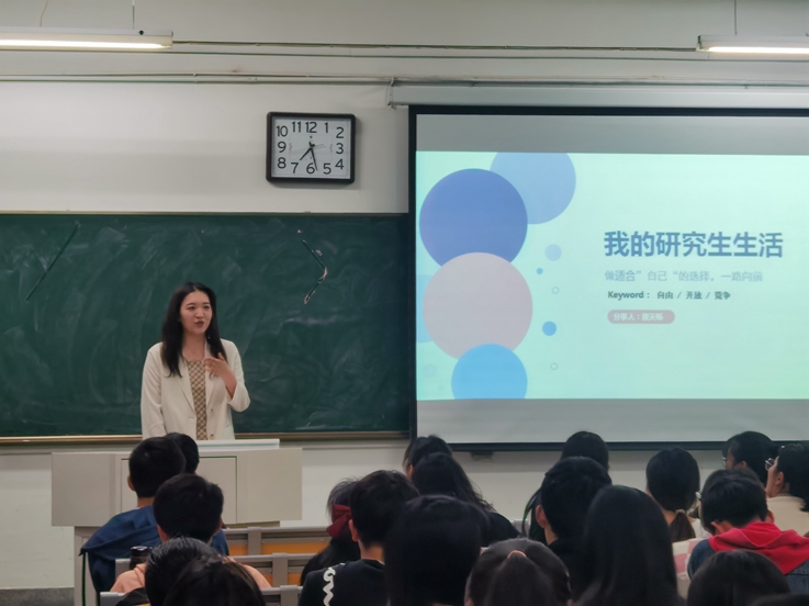 本网讯 为进一步激发本科生考研激情和动力,发挥朋辈教育作用,近日,经管学院研究生党支部组织党员代表深入2019级本科生班级进行考研宣讲。研究生们围绕考研目标的确立、学习方案的规划、考研心态的调试等方面的内容,结合各自研究生生涯的经历与思考,进行了分享。