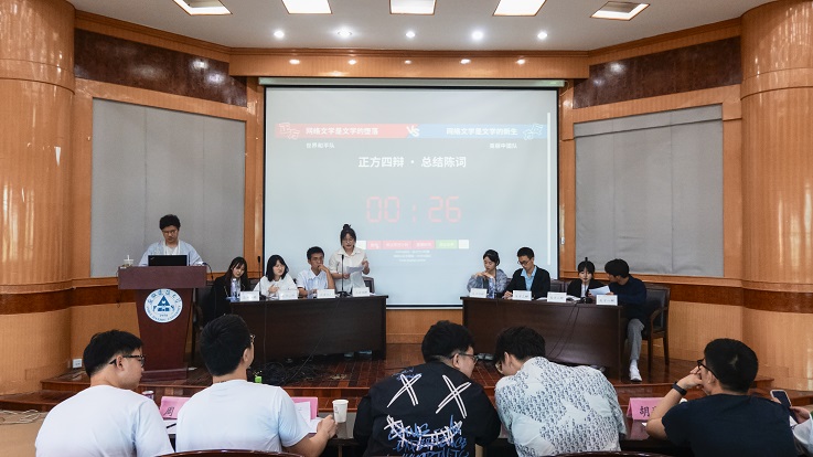 比赛现场气氛热烈,正方世界和平队的辩题是“网络的实用性大于娱乐性”,反方美丽中国队的辩题是“网络的娱乐性大于实用性”。比赛过程中八位辩手旁征博引,妙语连珠,理论与现实相结合,充分论证了网络的利弊,双方唇枪舌剑,为大家带来了一场精彩的对决。