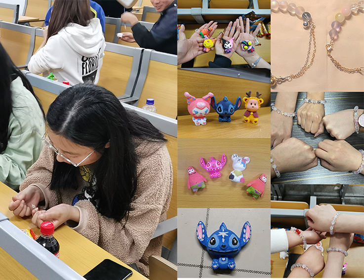 为增添学院学子在校园封闭式管理的课余趣味性并帮助同学们调整好心态,学院易班工作室于4月16日晚开展了以“放松心情,丰富生活”为主题的趣味手工美育活动,活动采取“线上报名+线下体验”的方式,感受绘画和手工的魅力。同学们参与活动按照学校防疫规定,戴着口罩,间隔就坐,活动从晚上七点分为两个部分同时开始,一是“石膏娃娃涂鸦”,同学们先选择自己喜欢的卡通人物,再两人一组共领一份颜料进行涂鸦;二是“手工手链制作”,同学们依据自己的喜好从材料包中选取不同的珠子串成手链。涂鸦组同学用不同的颜色绘制了熟悉的卡通人物,通过增添了自己的想象将石膏娃娃绘制地栩栩如生;手链制作组以不同质感的材料将一个个圆珠串成了富含深意的手串。活动结束后,每一小组都进行了分享,在分享的过程中同学们表达出自己内心深处的想法,并肯定了本次活动轻松愉快的氛围,本次活动为同学们提供了一个放松心情和相互交流的平台,用创意手工舒缓情绪,同学们热情洋溢,也充分展现出当代大学生的青春活力。