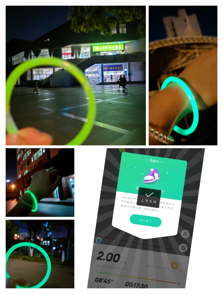 荧光夜跑活动积极倡导同学们走下网络,走出宿舍,走向操场,增强锻炼身体、强健体魄的意识,进一步丰富同学们的课余生活,充分展现了大学生青春风貌与活力。(作者:刘晓丹 张逸凡;审稿:陈国中)