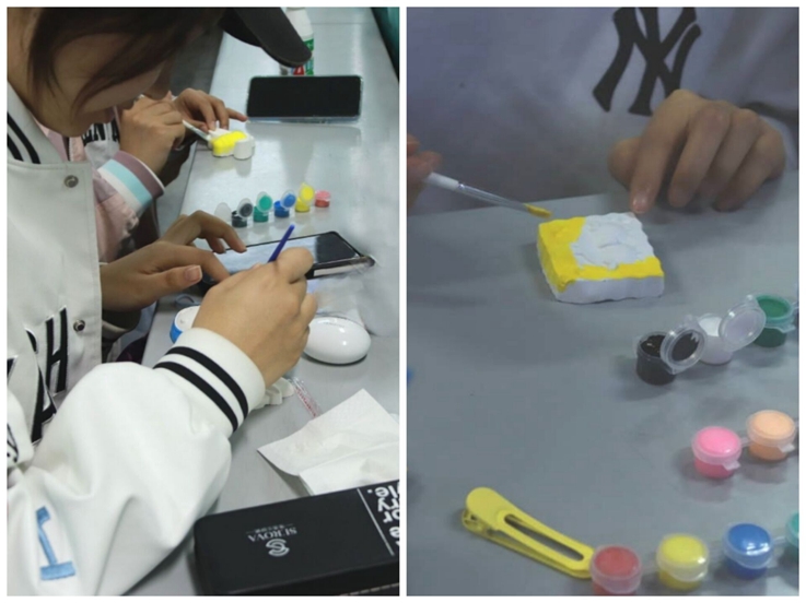 为进一步激发同学们对党,对团的热爱之情,20级造价1班全体团员开展“笔绘华夏波澜”主题团日活动。班委向每位同学发放一个空白的石膏娃娃,大家开动脑筋,自由发挥,将自己对于党和国家的情感用绘画的方式表达出来。有趣的游戏引起同学们极大的兴趣,军装兔子、红旗手小青蛙、五星红旗……原本单调的白色在同学们灵感的装饰下变得五彩斑斓。