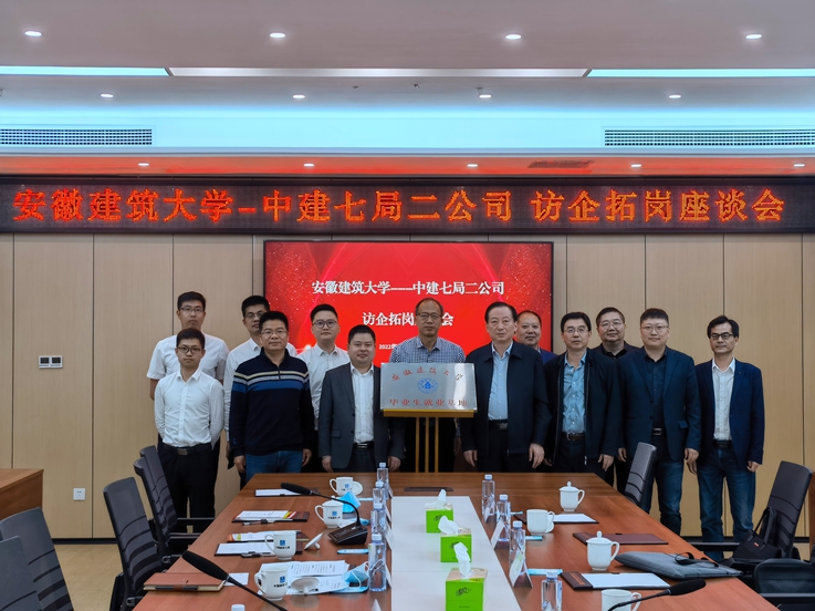 中建七局二公司副经理万书胜介绍了公司的基本情况、企业2022年人才招聘需求;中建七局安徽分公司党委书记、总经理程俊和中建七局基础设施分公司党总支书记、总经理陈天明对学校往届毕业生职业发展情况进行了介绍,对毕业生的敬业精神、学习能力、工作能力等综合素质给予了高度评价,并表达了进一步加强校企合作,扩大招聘计划的愿望。