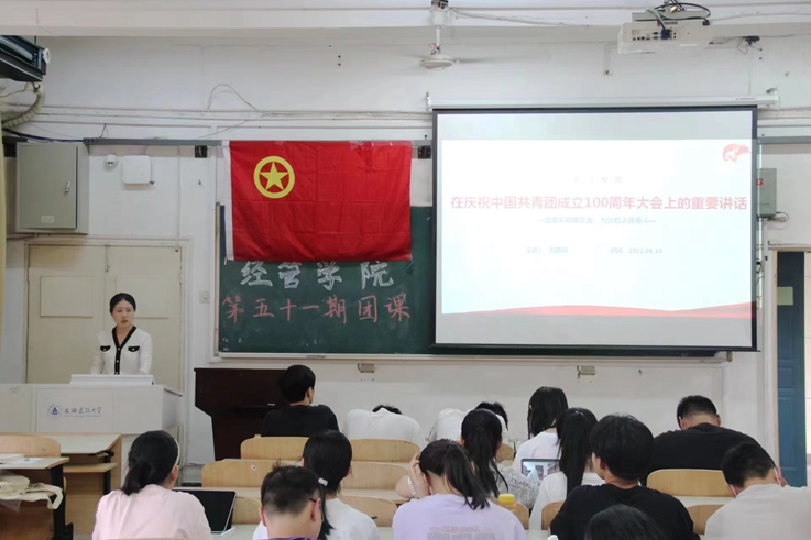 宁宁、孙文老师分别阐述了共青团的百年发展历程及光荣传统,详细介绍了团的基础知识、学院共青团工作开展情况等,进一步强化团员身份意识,增强同学们对团组织的认同感和归属感。