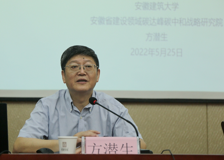 上午,方潜生教授做了题为《建设领域碳达峰碳中和发展与思考》的主旨报告,报告从“双碳”发展背景出发,从国家重大战略需求角度,介绍了全球、中国、安徽省建筑领域能耗与碳排放的现状;依托安徽省建筑领域典型案例,介绍了双碳目标下的建筑碳排放预测和实施路径;对安徽省建筑领域双碳发展进行了展望。报告既有理论高度又贴近现实,启发研究思路,引起强烈共鸣,师生们踊跃发言交流,现场气氛十分活跃。