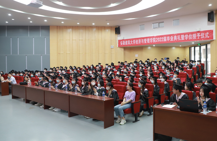 本网讯 6月9日,经管学院2022届毕业典礼暨学位授予仪式在北校区图书馆二楼报告厅举行。学校党委常委、副校长蔡新立出席典礼,经管学院党政领导、系主任、全体辅导员、教师代表及2022届毕业生代表到场参加。