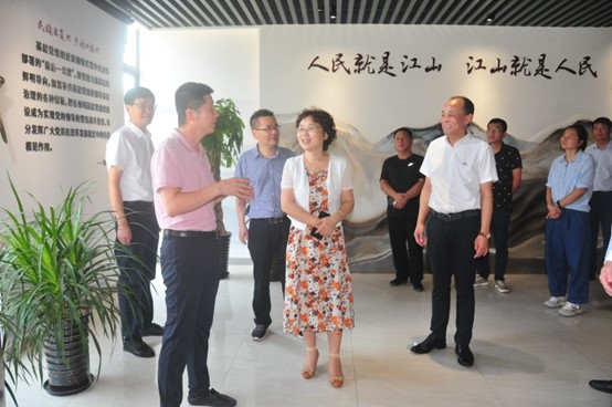 陆晓华一行在安徽省乡村振兴促进会秘书长左光之、ku游官方经济与管理学院党委书记陈国中、民建ku游官方主委朱庆生的陪同下察看了安徽省乡村振兴馆,听取了左光之对五个展厅—“产业、人才、文化、生态、组织”五大主题的介绍。