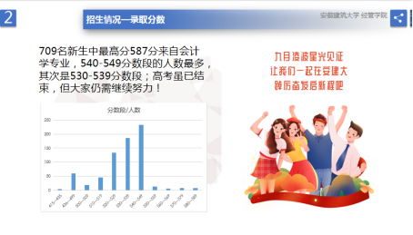 新生辅导员通过PPT从学院概况、招生情况、入学报到、家校联动四个篇章进行宣讲。第一篇围绕学院学科与专业架构,着重介绍本科生培养的亮点与特色,让家长了解学院的专业设置、办学定位和学生未来职业发展方向;第二篇依托数据及图表,介绍2022级新生招生情况,展示学生生源地分布、录取分数分布、男女生比例、年龄分布等,让家长明晰新生的构成;第三篇解读报到资料、报到地点、报到流程,罗列新生入学报到注意事项,以便高效完成报到工作;第四篇呼吁家长要学习如何与孩子远距离相处,强调家校联动的必要性,通过大学生适应问题重视新生适应期的心理疏导和心理沟通,同时对疫情防控和防范电信诈骗等内容做了进一步强调。